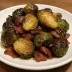 Bacon Brussels sprouts – tender roasted sprouts tossed with crispy bacon and caramelized to perfection. This quick and easy side dish turns simple ingredients into something irresistible, making it a family favorite for weeknights and holiday dinners alike.