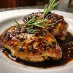 Balsamic glaze is the star — it’s sweet, tangy, and slightly syrupy, creating that gorgeous caramelized coating on the chicken.