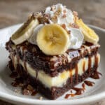 I recommend freezing only the brownie layer before adding toppings. The pudding, bananas, and whipped cream don’t freeze well and can become watery when thawed. Freeze the brownie layer tightly wrapped for up to 3 months, then thaw and add fresh toppings when you’re ready to serve.