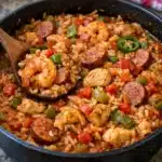 This authentic Cajun Jambalaya is a hearty one-pot meal loaded with chicken, andouille sausage, shrimp, and perfectly seasoned rice. It’s easy to make, packed with flavor, and guaranteed to become a family favorite!