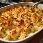 This Cauliflower Mac and Cheese recipe features tender roasted cauliflower florets smothered in a rich, creamy cheese sauce made with sharp cheddar, smoked gouda, and cream cheese. Baked until golden and bubbly, it’s the perfect low-carb, keto-friendly comfort food that the whole family will love.