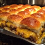Cheeseburger Sliders feature seasoned ground beef with double layers of melted cheddar cheese on soft dinner rolls, all baked together in one pan until golden and delicious. Perfect for parties, game day, or feeding a crowd with minimal effort!