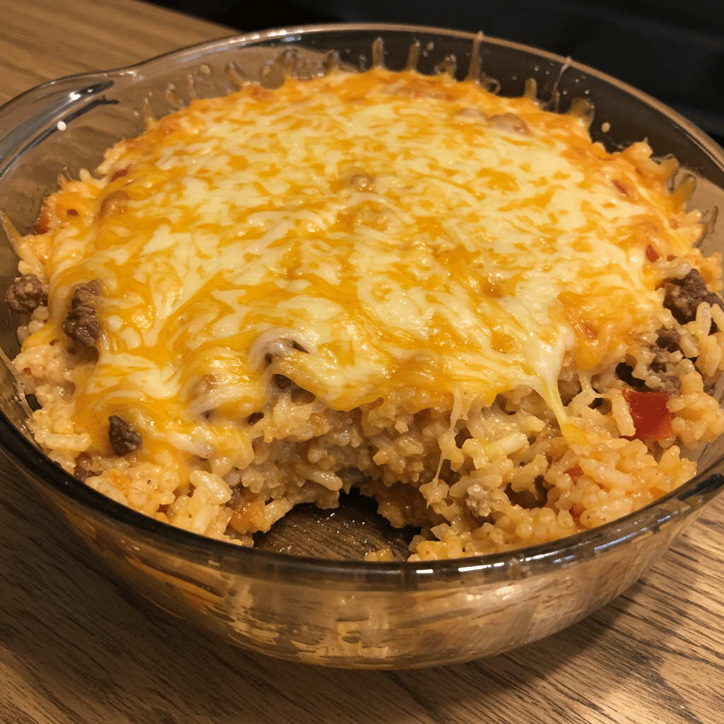 This one-pan meal is fast, flavorful, and ready in under 1 hour, making it perfect for weeknights when time is short. The rice soaks up all the seasoned beef and spices, while the cheese melts into a creamy layer that ties everything together. With simple, wholesome ingredients and minimal cleanup, it’s an easy win for the whole family.