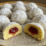 This is the important part – roll them in the leftover powdered sugar while they’re still hot. Then roll them again. Hot cookies hold the sugar better.