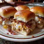 These Chicken Bacon Ranch Sliders are loaded with shredded chicken, crispy bacon, and melted cheese on buttery Hawaiian rolls. Easy, delicious, and perfect for parties!