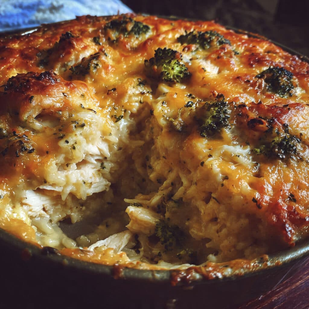 This homestyle chicken broccoli rice cheese casserole combines tender chicken, fluffy rice, fresh broccoli, and melted cheddar in one easy, family-friendly dish that’s perfect for busy weeknights.