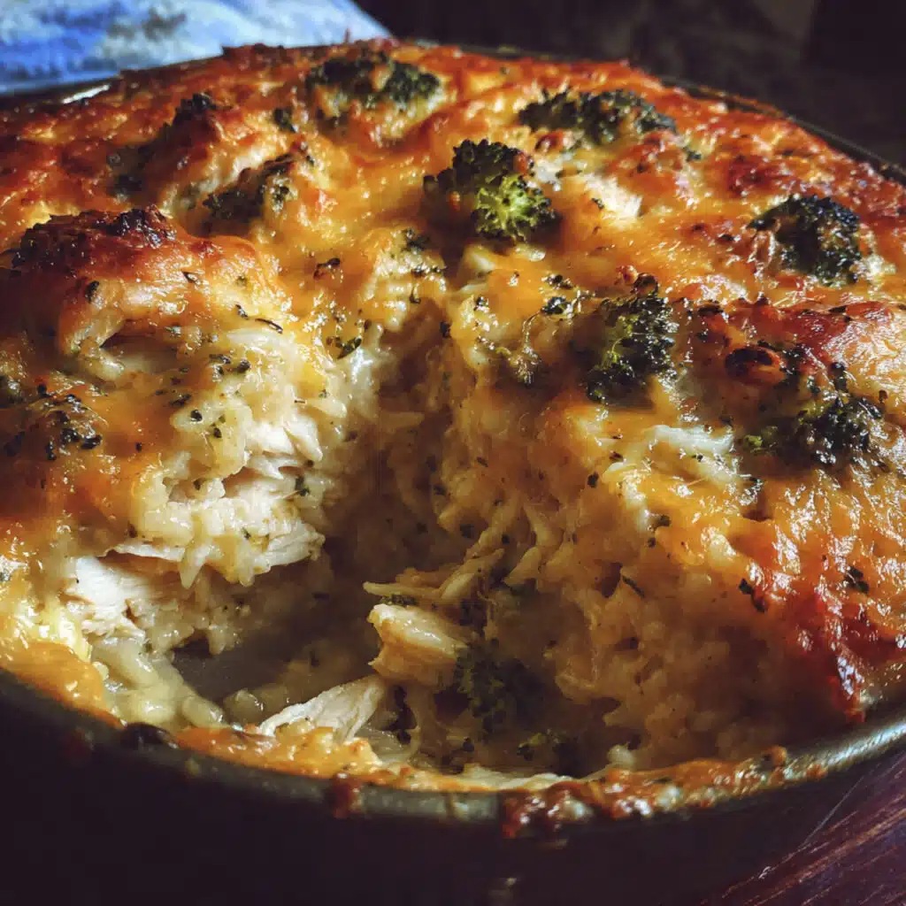 Classic Chicken Broccoli Rice Cheese Casserole—comfort food perfection in every creamy, cheesy bite
