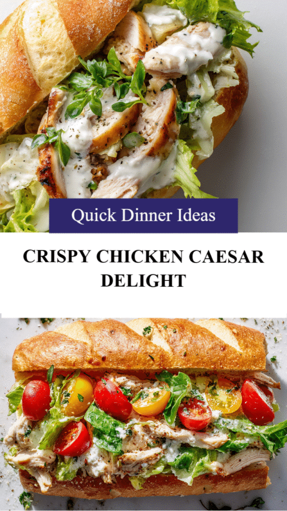 A mouthwatering Chicken Caesar Sandwich featuring crispy chicken schnitzel, creamy Caesar dressing, and buttery garlic bread. This handheld comfort food is perfect for lunch or dinner, delivering satisfying flavors and textures ideal for the whole family.