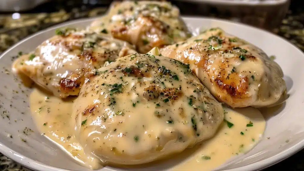 Seared chicken breasts finished in a rich, garlicky Parmesan cream sauce. Takes about 35 minutes and tastes way more complicated than it actually is.