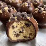 Chocolate chip cookie dough brownie bombs are combining a smooth chocolate shell with safe-to eat cookie dough filling. These no-bake treats are perfect for parties, gift-giving, or indulging your sweet tooth.