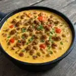 A hearty, beer-infused queso dip loaded with seasoned ground beef, black beans, jalapeños, and melted cheese. Perfect for parties, game day, or any time you need a crowd-pleasing appetizer.