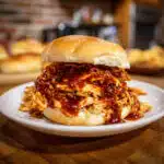 Pile that tender BBQ chicken onto slider buns, regular sandwich rolls, or warm tortillas. Top with crunchy coleslaw for texture, add some pickles for tang, and drizzle with extra BBQ sauce or ranch if you’re feeling fancy.