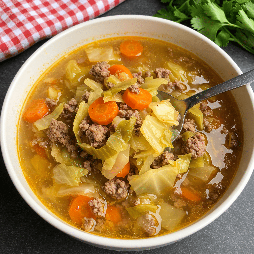 Hearty Ground Beef and Cabbage Soup – the perfect comfort food for cold days! Ready in 50 minutes with simple ingredients. Hearty, healthy, and perfect for meal prep. Family-friendly comfort food!