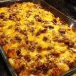 This easy hamburger hashbrown casserole combines seasoned ground beef, frozen hashbrowns, cream of mushroom soup, and melted cheddar cheese in one hearty, comforting dish. Perfect for weeknight dinners, potlucks, or feeding a crowd, this make-ahead friendly casserole bakes up golden and bubbly with an optional crunchy cornflake topping. Ready in under an hour with simple pantry ingredients!