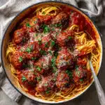 Tender, juicy, and full of classic Italian flavor, these meatballs are seasoned with herbs, garlic, and Parmesan for the perfect bite. Simmered in rich marinara sauce, they become even more flavorful and comforting. Serve them over pasta, in subs, or as a delicious appetizer.