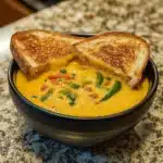 Jalapeño Popper Soup with Grilled Cheese Dippers is creamy, cheesy, and loaded with just the right kick of spice from fresh jalapeños. It’s the ultimate comfort food mashup that pairs rich, hearty soup with gooey grilled cheese for dunking. Perfect for game day, chilly nights, or anytime you want a fun twist on classic comfort food.