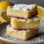 These classic lemon bars feature a tender, buttery shortbread crust topped with a silky, tart lemon custard filling. Made with fresh lemon juice and zest, they’re the perfect balance of sweet and tangy. Easy to make, beautiful to serve, and absolutely irresistible!