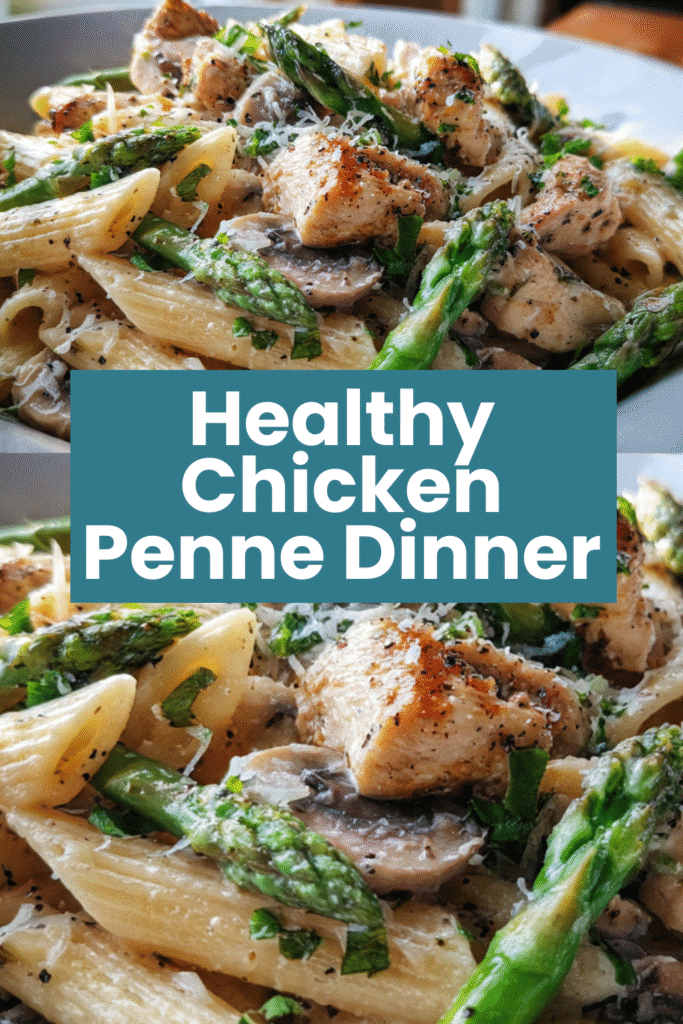 Tender seasoned chicken, golden mushrooms, and crisp asparagus are tossed with penne in a luscious Parmesan cream sauce that coats every piece of pasta perfectly. It is family-friendly, endlessly satisfying, and the kind of recipe everyone asks you to make again before the plates are even cleared.