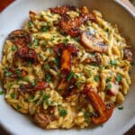 Creamy Mushroom Orzo is a quick and easy 30-minute pasta dish featuring tender orzo, caramelized mushrooms, fresh spinach, and a luscious Parmesan cream sauce. This restaurant-quality recipe is perfect for busy weeknights and easily customizable with your favorite proteins and vegetables.