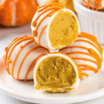 Easy No Bake Pumpkin Cheesecake Balls recipe with cream cheese, pumpkin puree, and white chocolate coating. Perfect make-ahead fall dessert that’s ready in just 15 minutes of prep