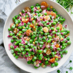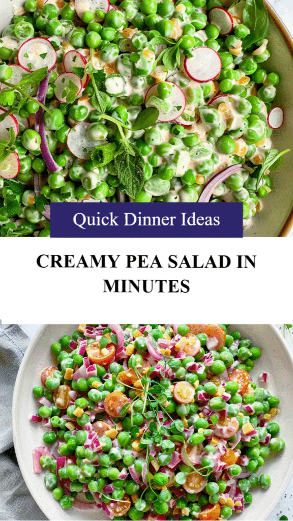 A creamy and refreshing pea salad with a tangy dressing, crisp peas, and savory turkey bacon. Perfect for gatherings or weekend meals.