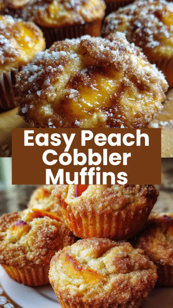 Moist, nostalgic Peach Cobbler Muffins with a crumbly topping, combining fresh peaches and a buttery base. Perfect for breakfast or snacks, these portable treats are quick to make and a family favorite.