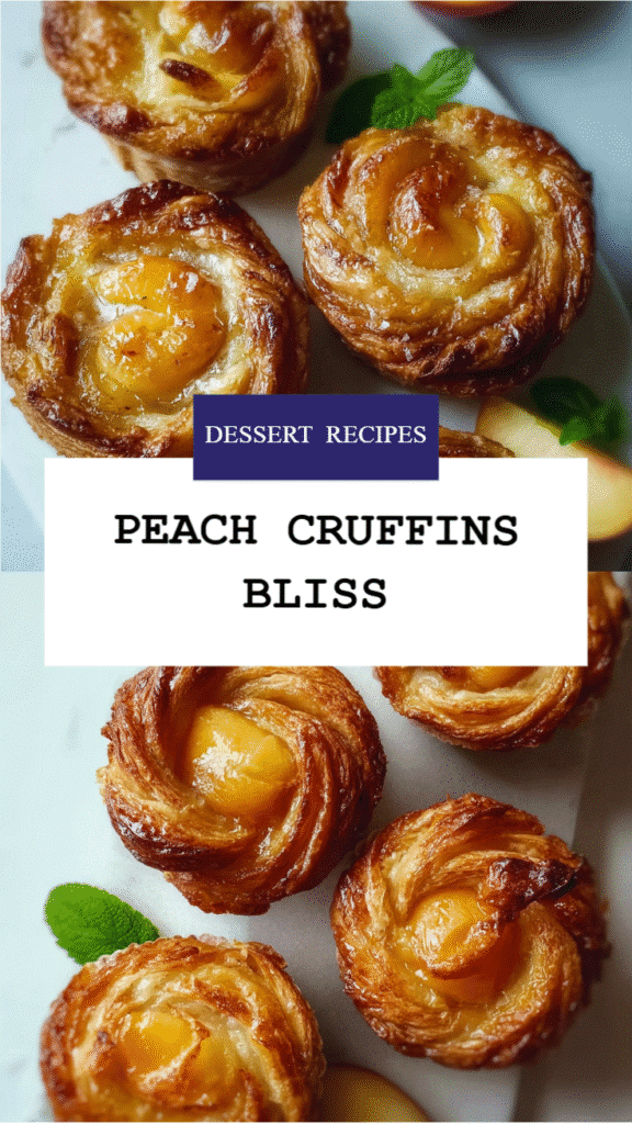 These Peach Pie Cruffins blend the buttery crust of a flaky biscuit with the sweet, autumnal flavors of peach pie, topped with a glossy cream glaze. An easy, family-friendly treat for any occasion.