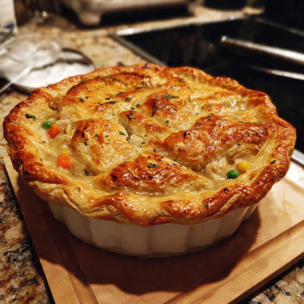Flaky, golden puff pastry tops a creamy, savory filling of tender chicken and hearty vegetables for a comforting twist on the classic pot pie. Easy to make and beautifully crisp, it’s the perfect cozy dinner for any night of the week.