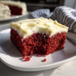 Red velvet snack cake is soft, moist, and perfectly sized for when you want homemade cake without making a whole layer cake. Baked in one 8×8 pan and topped with cream cheese frosting, this little beauty delivers all the classic red velvet flavor in an easy, fuss-free package.