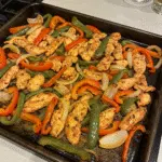 Sheet Pan Chicken Fajitas are a game-changing weeknight dinner that brings all the sizzling flavors of restaurant-style fajitas right to your kitchen—with minimal cleanup! Tender chicken strips, colorful bell peppers, and sweet caramelized onions roast together on one pan with a homemade fajita seasoning blend