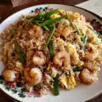 Shrimp fried rice is one of those comforting dishes that brings me right back to Friday night dinners. It’s quick, satisfying, and uses simple ingredients you probably already have on hand, fluffy white rice, tender shrimp, crisp bean sprouts, and that perfect splash of soy sauce.