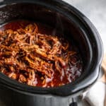 Cover and cook on LOW for 8-10 hours or on HIGH for 5-6 hours, until the beef is fork-tender and shreds easily. You’ll know it’s done when a fork slides in with almost no resistance and the meat falls apart when you try to lift it.