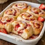 Strawberry Cheesecake Sweet Rolls are the showstopping, bakery breakfast treat. Soft, pillowy yeast-risen rolls stuffed with a velvety cream cheese and fresh strawberry filling, baked golden, and finished with a silky vanilla glaze that melts into every swirl while they are still warm.