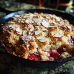This strawberry dump cake features sweet strawberry pie filling topped with cake mix, butter, and sliced almonds that bakes into an irresistible cobbler-like dessert. Perfect for potlucks, BBQs, and last-minute gatherings!