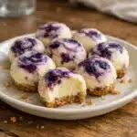 For a chocolate lover’s version, drizzle 2 tablespoons of warm chocolate ganache over the top of each finished bite instead of or in addition to the blueberry swirl. A dark chocolate swirl against the pale cheesecake filling looks dramatically beautiful and tastes even better.