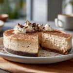 Decadent cheesecake combining tiramisu and coffee flavors with mascarpone, cold brew, and a ladyfinger crust. The perfect showstopping dessert!