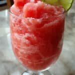 • Don’t skip freezing the watermelon; fresh watermelon won’t give you the same slushy texture.